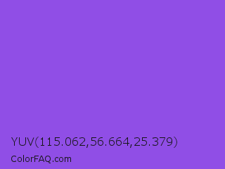 YUV 115.062,56.664,25.379 Color is a normal violet color and the nearest color is Navy Purple #9457eb. Hex code #904ee6 and RGB value is rgb(144,78,230). In RGB color space, this color is composed of 56% red, 31% green, 90% blue, In CMYK color space, this color is composed of 37% cyan, 66% magenta, 0% yellow , 10% black , In HSL color space, this color has a hue angle of 266° , 75% saturation and 60% lightness.