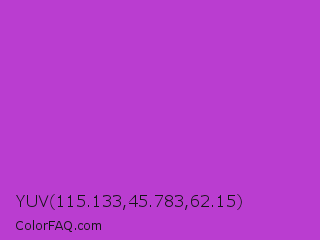 YUV 115.133,45.783,62.15 Color is a normal purple color and the nearest color is Steel Pink #cc33cc. Hex code #ba3dd0 and RGB value is rgb(186,61,208). In RGB color space, this color is composed of 73% red, 24% green, 82% blue, In CMYK color space, this color is composed of 11% cyan, 71% magenta, 0% yellow , 18% black , In HSL color space, this color has a hue angle of 291° , 61% saturation and 53% lightness.
