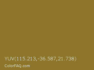 YUV 115.213,-36.587,21.738 Color is a normal yellow color and the nearest color is Spanish Bistre #807532. Hex code #8c7529 and RGB value is rgb(140,117,41). In RGB color space, this color is composed of 55% red, 46% green, 16% blue, In CMYK color space, this color is composed of 0% cyan, 16% magenta, 71% yellow , 45% black , In HSL color space, this color has a hue angle of 46° , 55% saturation and 35% lightness.