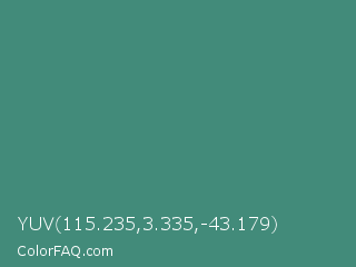 YUV 115.235,3.335,-43.179 Color is a normal cyan color and the nearest color is Viridian #40826d. Hex code #428b7a and RGB value is rgb(66,139,122). In RGB color space, this color is composed of 26% red, 55% green, 48% blue, In CMYK color space, this color is composed of 53% cyan, 0% magenta, 12% yellow , 45% black , In HSL color space, this color has a hue angle of 166° , 36% saturation and 40% lightness.
