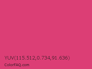 YUV 115.512,0.734,91.636 Color is a normal rose color and the nearest color is Cabaret #d94972. Hex code #dc3e75 and RGB value is rgb(220,62,117). In RGB color space, this color is composed of 86% red, 24% green, 46% blue, In CMYK color space, this color is composed of 0% cyan, 72% magenta, 47% yellow , 14% black , In HSL color space, this color has a hue angle of 339° , 69% saturation and 55% lightness.