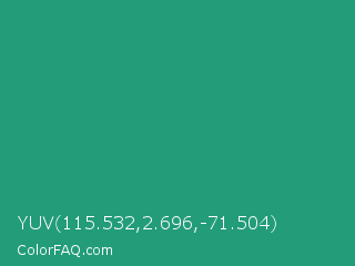 YUV 115.532,2.696,-71.504 Color is a normal green color and the nearest color is Green Crayola #1cac78. Hex code #229c79 and RGB value is rgb(34,156,121). In RGB color space, this color is composed of 13% red, 61% green, 47% blue, In CMYK color space, this color is composed of 78% cyan, 0% magenta, 22% yellow , 39% black , In HSL color space, this color has a hue angle of 163° , 64% saturation and 37% lightness.