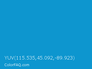 YUV 115.535,45.092,-89.923 Color is a normal blue color and the nearest color is Rich Electric Blue #0892d0. Hex code #0d96cf and RGB value is rgb(13,150,207). In RGB color space, this color is composed of 5% red, 59% green, 81% blue, In CMYK color space, this color is composed of 94% cyan, 28% magenta, 0% yellow , 19% black , In HSL color space, this color has a hue angle of 198° , 88% saturation and 43% lightness.