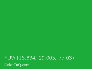 YUV 115.834,-29.005,-77.03 Color is a normal green color and the nearest color is Wageningen Green #34b233. Hex code #1cac39 and RGB value is rgb(28,172,57). In RGB color space, this color is composed of 11% red, 67% green, 22% blue, In CMYK color space, this color is composed of 84% cyan, 0% magenta, 67% yellow , 33% black , In HSL color space, this color has a hue angle of 132° , 72% saturation and 39% lightness.