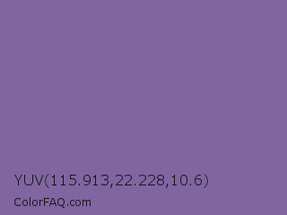 YUV 115.913,22.228,10.6 Color is a normal violet color and the nearest color is Deluge #7563a8. Hex code #8065a1 and RGB value is rgb(128,101,161). In RGB color space, this color is composed of 50% red, 40% green, 63% blue, In CMYK color space, this color is composed of 20% cyan, 37% magenta, 0% yellow , 37% black , In HSL color space, this color has a hue angle of 267° , 24% saturation and 51% lightness.