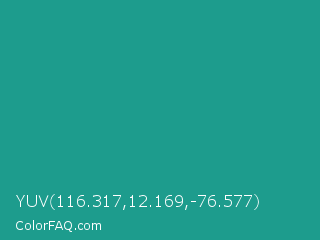 YUV 116.317,12.169,-76.577 Color is a normal cyan color and the nearest color is Jungle Green #29ab87. Hex code #1d9c8d and RGB value is rgb(29,156,141). In RGB color space, this color is composed of 11% red, 61% green, 55% blue, In CMYK color space, this color is composed of 81% cyan, 0% magenta, 10% yellow , 39% black , In HSL color space, this color has a hue angle of 173° , 69% saturation and 36% lightness.