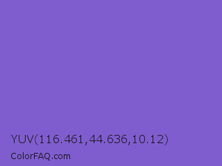 YUV 116.461,44.636,10.12 Color is a normal indigo color and the nearest color is Fuchsia Blue #7a58c1. Hex code #805dcf and RGB value is rgb(128,93,207). In RGB color space, this color is composed of 50% red, 36% green, 81% blue, In CMYK color space, this color is composed of 38% cyan, 55% magenta, 0% yellow , 19% black , In HSL color space, this color has a hue angle of 258° , 54% saturation and 59% lightness.