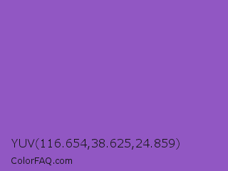 YUV 116.654,38.625,24.859 Color is a normal purple color and the nearest color is Deep Lilac #9955bb. Hex code #9157c3 and RGB value is rgb(145,87,195). In RGB color space, this color is composed of 57% red, 34% green, 76% blue, In CMYK color space, this color is composed of 26% cyan, 55% magenta, 0% yellow , 24% black , In HSL color space, this color has a hue angle of 272° , 47% saturation and 55% lightness.