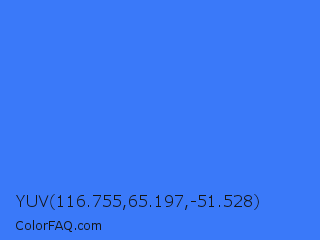 YUV 116.755,65.197,-51.528 Color is a normal blue color and the nearest color is Ultramarine Blue #4166f5. Hex code #3a79f9 and RGB value is rgb(58,121,249). In RGB color space, this color is composed of 23% red, 47% green, 98% blue, In CMYK color space, this color is composed of 77% cyan, 51% magenta, 0% yellow , 2% black , In HSL color space, this color has a hue angle of 220° , 94% saturation and 60% lightness.