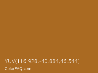 YUV 116.928,-40.884,46.544 Color is a normal orange color and the nearest color is Desert #ae6020. Hex code #aa6a22 and RGB value is rgb(170,106,34). In RGB color space, this color is composed of 67% red, 42% green, 13% blue, In CMYK color space, this color is composed of 0% cyan, 38% magenta, 80% yellow , 33% black , In HSL color space, this color has a hue angle of 32° , 67% saturation and 40% lightness.