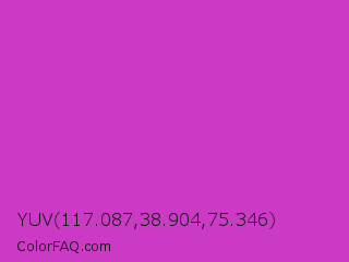 YUV 117.087,38.904,75.346 Color is a normal magenta color and the nearest color is Steel Pink #cc33cc. Hex code #cb3ac4 and RGB value is rgb(203,58,196). In RGB color space, this color is composed of 80% red, 23% green, 77% blue, In CMYK color space, this color is composed of 0% cyan, 71% magenta, 3% yellow , 20% black , In HSL color space, this color has a hue angle of 303° , 58% saturation and 51% lightness.