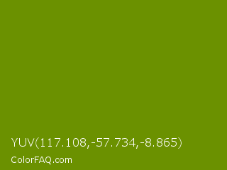 YUV 117.108,-57.734,-8.865 Color is a dark lime color and the nearest color is Limeade #6f9d02. Hex code #6b9100 and RGB value is rgb(107,145,-0). In RGB color space, this color is composed of 42% red, 57% green, 0% blue, In CMYK color space, this color is composed of 26% cyan, 0% magenta, 100% yellow , 43% black , In HSL color space, this color has a hue angle of 76° , 100% saturation and 28% lightness.