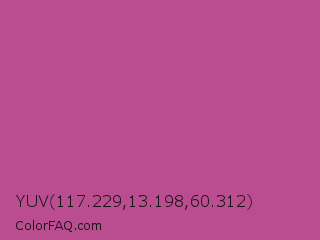 YUV 117.229,13.198,60.312 Color is a normal magenta color and the nearest color is Mulberry #c54b8c. Hex code #ba4d90 and RGB value is rgb(186,77,144). In RGB color space, this color is composed of 73% red, 30% green, 56% blue, In CMYK color space, this color is composed of 0% cyan, 59% magenta, 23% yellow , 27% black , In HSL color space, this color has a hue angle of 323° , 44% saturation and 52% lightness.