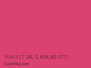 YUV 117.29,-2.608,90.077 Color is a normal rose color and the nearest color is Cabaret #d94972. Hex code #dc4270 and RGB value is rgb(220,66,112). In RGB color space, this color is composed of 86% red, 26% green, 44% blue, In CMYK color space, this color is composed of 0% cyan, 70% magenta, 49% yellow , 14% black , In HSL color space, this color has a hue angle of 342° , 69% saturation and 56% lightness.