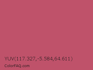YUV 117.327,-5.584,64.611 Color is a normal red color and the nearest color is Popstar #be4f62. Hex code #bf526a and RGB value is rgb(191,82,106). In RGB color space, this color is composed of 75% red, 32% green, 42% blue, In CMYK color space, this color is composed of 0% cyan, 57% magenta, 45% yellow , 25% black , In HSL color space, this color has a hue angle of 347° , 46% saturation and 54% lightness.