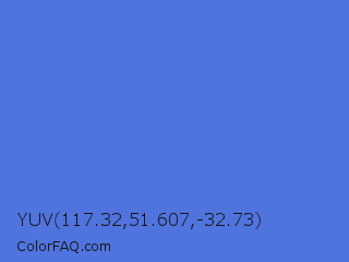 YUV 117.32,51.607,-32.73 Color is a normal blue color and the nearest color is Royal Blue #4169e1. Hex code #5074de and RGB value is rgb(80,116,222). In RGB color space, this color is composed of 31% red, 45% green, 87% blue, In CMYK color space, this color is composed of 64% cyan, 48% magenta, 0% yellow , 13% black , In HSL color space, this color has a hue angle of 225° , 68% saturation and 59% lightness.
