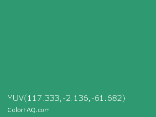 YUV 117.333,-2.136,-61.682 Color is a normal green color and the nearest color is Illuminating Emerald #319177. Hex code #2f9a71 and RGB value is rgb(47,154,113). In RGB color space, this color is composed of 18% red, 60% green, 44% blue, In CMYK color space, this color is composed of 69% cyan, 0% magenta, 27% yellow , 40% black , In HSL color space, this color has a hue angle of 157° , 53% saturation and 39% lightness.