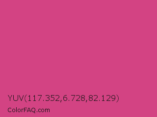 YUV 117.352,6.728,82.129 Color is a normal rose color and the nearest color is Magenta Pantone #d0417e. Hex code #d34383 and RGB value is rgb(211,67,131). In RGB color space, this color is composed of 83% red, 26% green, 51% blue, In CMYK color space, this color is composed of 0% cyan, 68% magenta, 38% yellow , 17% black , In HSL color space, this color has a hue angle of 333° , 62% saturation and 55% lightness.