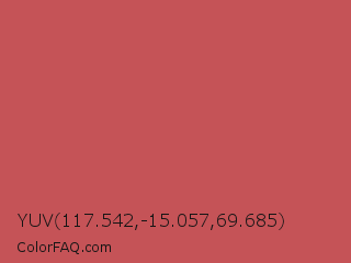 YUV 117.542,-15.057,69.685 Color is a normal red color and the nearest color is Fuzzy Wuzzy Brown #c45655. Hex code #c55357 and RGB value is rgb(197,83,87). In RGB color space, this color is composed of 77% red, 33% green, 34% blue, In CMYK color space, this color is composed of 0% cyan, 58% magenta, 56% yellow , 23% black , In HSL color space, this color has a hue angle of 358° , 50% saturation and 55% lightness.