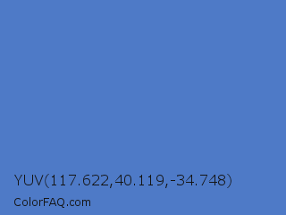 YUV 117.622,40.119,-34.748 Color is a normal blue color and the nearest color is Cyan Blue Azure #4682bf. Hex code #4e7ac7 and RGB value is rgb(78,122,199). In RGB color space, this color is composed of 31% red, 48% green, 78% blue, In CMYK color space, this color is composed of 61% cyan, 39% magenta, 0% yellow , 22% black , In HSL color space, this color has a hue angle of 218° , 52% saturation and 54% lightness.
