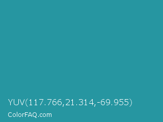 YUV 117.766,21.314,-69.955 Color is a normal cyan color and the nearest color is Eastern Blue #1e9ab0. Hex code #2696a1 and RGB value is rgb(38,150,161). In RGB color space, this color is composed of 15% red, 59% green, 63% blue, In CMYK color space, this color is composed of 76% cyan, 7% magenta, 0% yellow , 37% black , In HSL color space, this color has a hue angle of 185° , 62% saturation and 39% lightness.