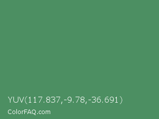 YUV 117.837,-9.78,-36.691 Color is a normal green color and the nearest color is Middle Green #4d8c57. Hex code #4c8f62 and RGB value is rgb(76,143,98). In RGB color space, this color is composed of 30% red, 56% green, 38% blue, In CMYK color space, this color is composed of 47% cyan, 0% magenta, 31% yellow , 44% black , In HSL color space, this color has a hue angle of 140° , 31% saturation and 43% lightness.