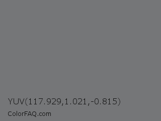 YUV 117.929,1.021,-0.815 Color is a normal blue color and the nearest color is Sonic Silver #757575. Hex code #757678 and RGB value is rgb(117,118,120). In RGB color space, this color is composed of 46% red, 46% green, 47% blue, In CMYK color space, this color is composed of 3% cyan, 2% magenta, 0% yellow , 53% black , In HSL color space, this color has a hue angle of 220° , 1% saturation and 46% lightness.