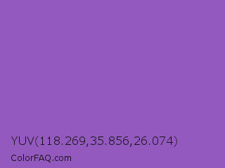 YUV 118.269,35.856,26.074 Color is a normal purple color and the nearest color is Deep Lilac #9955bb. Hex code #9459bf and RGB value is rgb(148,89,191). In RGB color space, this color is composed of 58% red, 35% green, 75% blue, In CMYK color space, this color is composed of 23% cyan, 53% magenta, 0% yellow , 25% black , In HSL color space, this color has a hue angle of 275° , 44% saturation and 55% lightness.