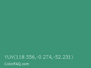 YUV 118.556,-0.274,-52.231 Color is a normal green color and the nearest color is Illuminating Emerald #319177. Hex code #3b9576 and RGB value is rgb(59,149,118). In RGB color space, this color is composed of 23% red, 58% green, 46% blue, In CMYK color space, this color is composed of 60% cyan, 0% magenta, 21% yellow , 42% black , In HSL color space, this color has a hue angle of 159° , 43% saturation and 41% lightness.