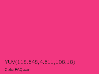 YUV 118.648,4.611,108.18 Color is a normal rose color and the nearest color is Cerise Pink #ec3b83. Hex code #f23680 and RGB value is rgb(242,54,128). In RGB color space, this color is composed of 95% red, 21% green, 50% blue, In CMYK color space, this color is composed of 0% cyan, 78% magenta, 47% yellow , 5% black , In HSL color space, this color has a hue angle of 336° , 88% saturation and 58% lightness.