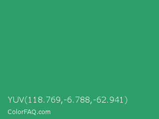 YUV 118.769,-6.788,-62.941 Color is a normal green color and the nearest color is Illuminating Emerald #319177. Hex code #2f9e69 and RGB value is rgb(47,158,105). In RGB color space, this color is composed of 18% red, 62% green, 41% blue, In CMYK color space, this color is composed of 70% cyan, 0% magenta, 34% yellow , 38% black , In HSL color space, this color has a hue angle of 151° , 54% saturation and 40% lightness.