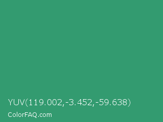 YUV 119.002,-3.452,-59.638 Color is a normal green color and the nearest color is Illuminating Emerald #319177. Hex code #339b70 and RGB value is rgb(51,155,112). In RGB color space, this color is composed of 20% red, 61% green, 44% blue, In CMYK color space, this color is composed of 67% cyan, 0% magenta, 28% yellow , 39% black , In HSL color space, this color has a hue angle of 155° , 50% saturation and 40% lightness.