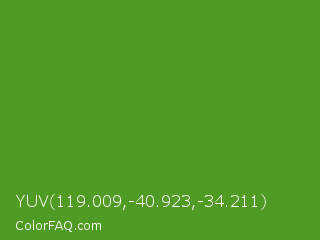 YUV 119.009,-40.923,-34.211 Color is a normal green color and the nearest color is Vida Loca #549019. Hex code #509b24 and RGB value is rgb(80,155,36). In RGB color space, this color is composed of 31% red, 61% green, 14% blue, In CMYK color space, this color is composed of 48% cyan, 0% magenta, 77% yellow , 39% black , In HSL color space, this color has a hue angle of 98° , 62% saturation and 37% lightness.