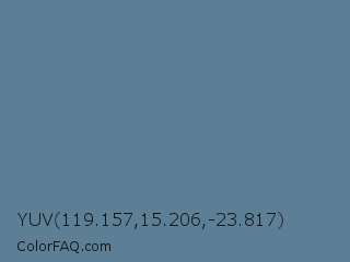 YUV 119.157,15.206,-23.817 Color is a normal blue color and the nearest color is Horizon #5a87a0. Hex code #5c7f96 and RGB value is rgb(92,127,150). In RGB color space, this color is composed of 36% red, 50% green, 59% blue, In CMYK color space, this color is composed of 39% cyan, 15% magenta, 0% yellow , 41% black , In HSL color space, this color has a hue angle of 204° , 24% saturation and 47% lightness.