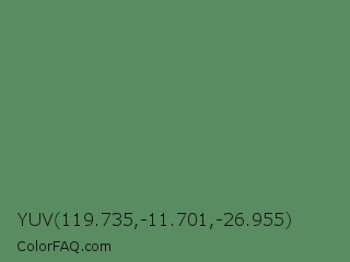 YUV 119.735,-11.701,-26.955 Color is a normal green color and the nearest color is Spring Leaves #578363. Hex code #598c60 and RGB value is rgb(89,140,96). In RGB color space, this color is composed of 35% red, 55% green, 38% blue, In CMYK color space, this color is composed of 36% cyan, 0% magenta, 31% yellow , 45% black , In HSL color space, this color has a hue angle of 128° , 22% saturation and 45% lightness.