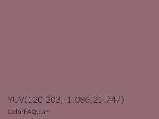 YUV 120.203,-1.086,21.747 Color is a normal rose color and the nearest color is Opium #8e6f70. Hex code #916c76 and RGB value is rgb(145,108,118). In RGB color space, this color is composed of 57% red, 42% green, 46% blue, In CMYK color space, this color is composed of 0% cyan, 26% magenta, 19% yellow , 43% black , In HSL color space, this color has a hue angle of 344° , 15% saturation and 50% lightness.