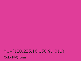 YUV 120.225,16.158,91.011 Color is a normal magenta color and the nearest color is Pink Pantone #d74894. Hex code #e03d99 and RGB value is rgb(224,61,153). In RGB color space, this color is composed of 88% red, 24% green, 60% blue, In CMYK color space, this color is composed of 0% cyan, 73% magenta, 32% yellow , 12% black , In HSL color space, this color has a hue angle of 326° , 72% saturation and 56% lightness.