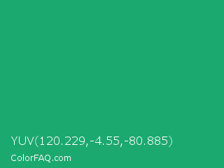 YUV 120.229,-4.55,-80.885 Color is a normal green color and the nearest color is Green Crayola #1cac78. Hex code #1ca96f and RGB value is rgb(28,169,111). In RGB color space, this color is composed of 11% red, 66% green, 44% blue, In CMYK color space, this color is composed of 83% cyan, 0% magenta, 34% yellow , 34% black , In HSL color space, this color has a hue angle of 155° , 72% saturation and 39% lightness.