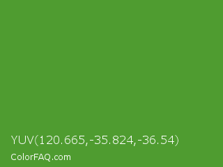 YUV 120.665,-35.824,-36.54 Color is a normal green color and the nearest color is Apple #4fa83d. Hex code #4f9c30 and RGB value is rgb(79,156,48). In RGB color space, this color is composed of 31% red, 61% green, 19% blue, In CMYK color space, this color is composed of 49% cyan, 0% magenta, 69% yellow , 39% black , In HSL color space, this color has a hue angle of 103° , 53% saturation and 40% lightness.