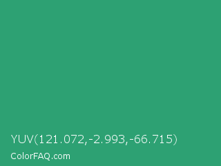 YUV 121.072,-2.993,-66.715 Color is a normal green color and the nearest color is Illuminating Emerald #319177. Hex code #2da173 and RGB value is rgb(45,161,115). In RGB color space, this color is composed of 18% red, 63% green, 45% blue, In CMYK color space, this color is composed of 72% cyan, 0% magenta, 29% yellow , 37% black , In HSL color space, this color has a hue angle of 156° , 56% saturation and 40% lightness.
