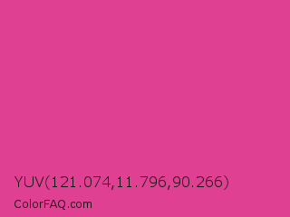 YUV 121.074,11.796,90.266 Color is a normal rose color and the nearest color is Pink Pantone #d74894. Hex code #e04091 and RGB value is rgb(224,64,145). In RGB color space, this color is composed of 88% red, 25% green, 57% blue, In CMYK color space, this color is composed of 0% cyan, 71% magenta, 35% yellow , 12% black , In HSL color space, this color has a hue angle of 330° , 72% saturation and 56% lightness.