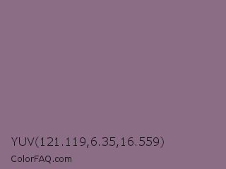 YUV 121.119,6.35,16.559 Color is a normal magenta color and the nearest color is Strikemaster #956387. Hex code #8c6d86 and RGB value is rgb(140,109,134). In RGB color space, this color is composed of 55% red, 43% green, 53% blue, In CMYK color space, this color is composed of 0% cyan, 22% magenta, 4% yellow , 45% black , In HSL color space, this color has a hue angle of 312° , 12% saturation and 49% lightness.