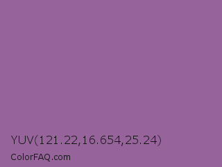YUV 121.22,16.654,25.24 Color is a normal magenta color and the nearest color is Trendy Pink #8c6495. Hex code #96649b and RGB value is rgb(150,100,155). In RGB color space, this color is composed of 59% red, 39% green, 61% blue, In CMYK color space, this color is composed of 3% cyan, 35% magenta, 0% yellow , 39% black , In HSL color space, this color has a hue angle of 295° , 22% saturation and 50% lightness.