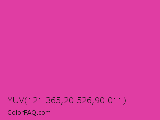 YUV 121.365,20.526,90.011 Color is a normal magenta color and the nearest color is Frostbite #e936a7. Hex code #e03da3 and RGB value is rgb(224,61,163). In RGB color space, this color is composed of 88% red, 24% green, 64% blue, In CMYK color space, this color is composed of 0% cyan, 73% magenta, 27% yellow , 12% black , In HSL color space, this color has a hue angle of 322° , 72% saturation and 56% lightness.