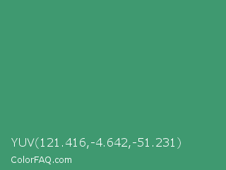 YUV 121.416,-4.642,-51.231 Color is a normal green color and the nearest color is Illuminating Emerald #319177. Hex code #3f9970 and RGB value is rgb(63,153,112). In RGB color space, this color is composed of 25% red, 60% green, 44% blue, In CMYK color space, this color is composed of 59% cyan, 0% magenta, 27% yellow , 40% black , In HSL color space, this color has a hue angle of 153° , 42% saturation and 42% lightness.