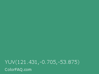 YUV 121.431,-0.705,-53.875 Color is a normal green color and the nearest color is Illuminating Emerald #319177. Hex code #3c9978 and RGB value is rgb(60,153,120). In RGB color space, this color is composed of 24% red, 60% green, 47% blue, In CMYK color space, this color is composed of 61% cyan, 0% magenta, 22% yellow , 40% black , In HSL color space, this color has a hue angle of 159° , 44% saturation and 42% lightness.