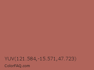 YUV 121.584,-15.571,47.723 Color is a normal red color and the nearest color is Matrix #b05d54. Hex code #b0645a and RGB value is rgb(176,100,90). In RGB color space, this color is composed of 69% red, 39% green, 35% blue, In CMYK color space, this color is composed of 0% cyan, 43% magenta, 49% yellow , 31% black , In HSL color space, this color has a hue angle of 7° , 35% saturation and 52% lightness.