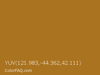 YUV 121.983,-44.362,42.111 Color is a normal orange color and the nearest color is Mandalay #ad781b. Hex code #aa7320 and RGB value is rgb(170,115,32). In RGB color space, this color is composed of 67% red, 45% green, 13% blue, In CMYK color space, this color is composed of 0% cyan, 32% magenta, 81% yellow , 33% black , In HSL color space, this color has a hue angle of 36° , 68% saturation and 40% lightness.