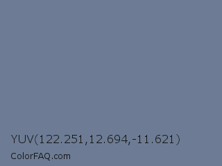 YUV 122.251,12.694,-11.621 Color is a normal blue color and the nearest color is Slate Gray #708090. Hex code #6d7c94 and RGB value is rgb(109,124,148). In RGB color space, this color is composed of 43% red, 49% green, 58% blue, In CMYK color space, this color is composed of 26% cyan, 16% magenta, 0% yellow , 42% black , In HSL color space, this color has a hue angle of 217° , 15% saturation and 50% lightness.