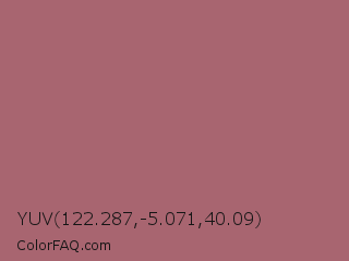 YUV 122.287,-5.071,40.09 Color is a normal red color and the nearest color is Coral Tree #a86b6b. Hex code #a86570 and RGB value is rgb(168,101,112). In RGB color space, this color is composed of 66% red, 40% green, 44% blue, In CMYK color space, this color is composed of 0% cyan, 40% magenta, 33% yellow , 34% black , In HSL color space, this color has a hue angle of 350° , 28% saturation and 53% lightness.